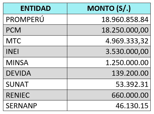 Radio y Televisión: 11 entidades optaron por estos medios tradicionales, con una inversión total de 32.440.020,91 soles.